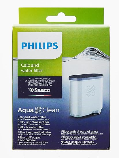The Philips AquaClean anti-limescale water filter ensures you can enjoy up to 5,000 cups of tasty drinks with your espresso machine without any descaling. Enjoy pure water for delicate tasting coffee with the easy-to-install limescale blocking filter of your automatic coffee machine.