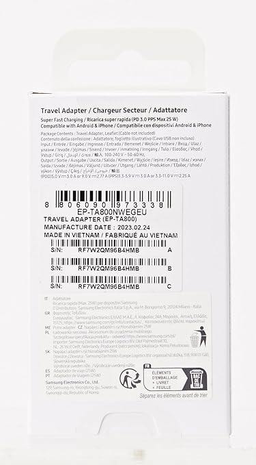 Samsung EP-TA800N USB-C™ Mobile Phone Charger White Package Size: Contents: 1 piece Original quality of Samsung